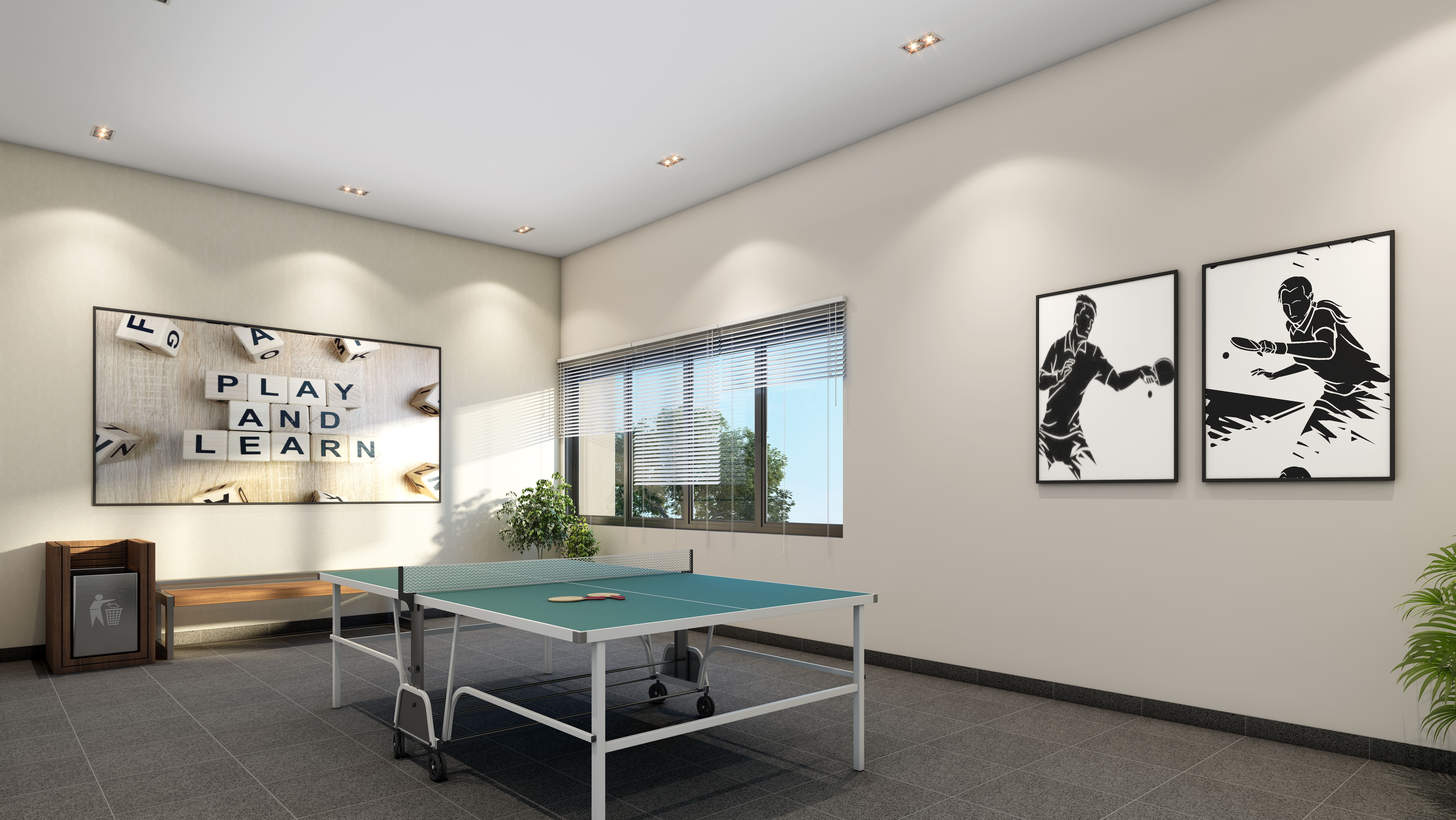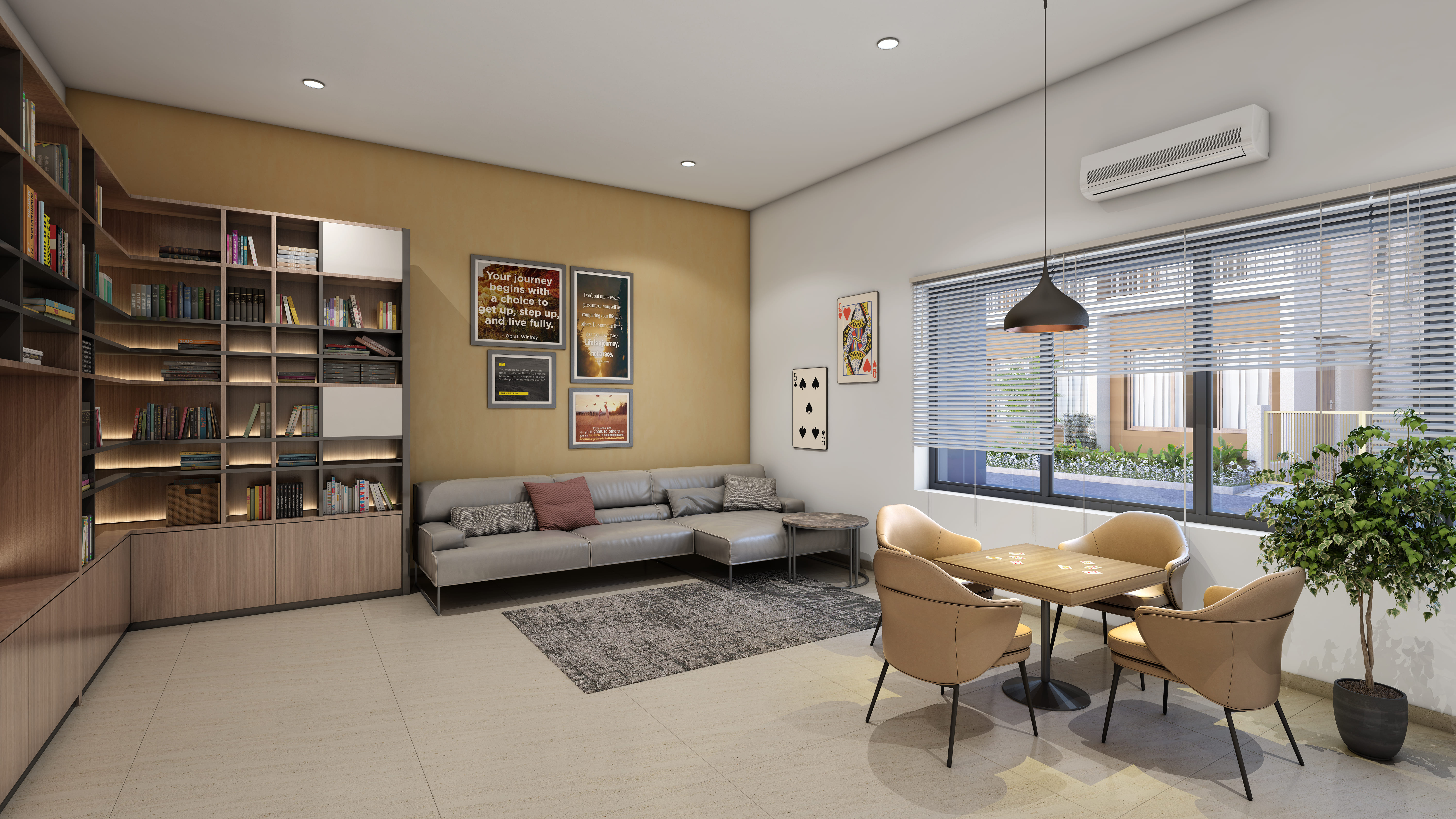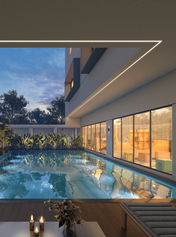 Indoor amenities like Banquet Hall, Swimming Pool, Toddlers Room, Barbeque Area, Badminton Court, Indoor Games Room & Library cum Cards Room.