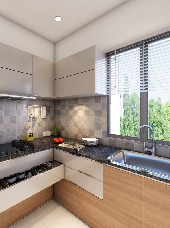 • Kitchen Dado upto 2ft from kitchen Counter top rest Putty finish